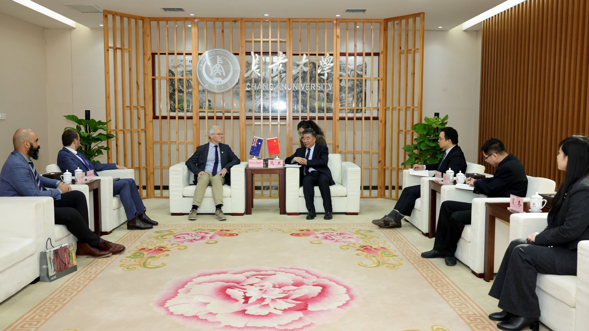 范文对Steve Eggins一行的来访表示欢迎,他介绍了学校的基本情况,重点介绍了学校国际化建设情况。他表示,学校多年来主动对接社会发展需求,不断发挥学科特色,为基础设施建设行业培养了大量高水平人才,并在基础设施建设领域发挥了重要作用。他强调,学校始终致力于国际化发展,十分重视与澳大利亚国立大学等澳洲顶尖知名高校的合作,希望以此次交流为契机,以学生联合培养、科研项目合作等实质性合作为开端,推动双方开展更广泛的合作。