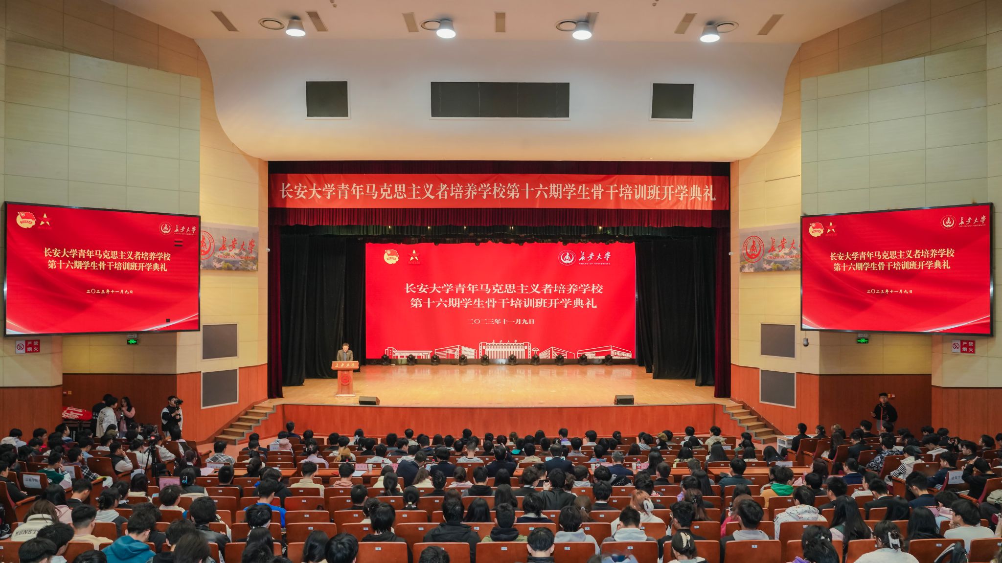 为深入学习贯彻习近平新时代中国特色社会主义思想,深化开展团员和青年主题教育,进一步推进环球ug登录网站青年马克思主义者培养工作,11月9日晚,环球ug登录网站青年马克思主义者培养学校第十六期学生骨干培训班开学典礼在北校区长安文化艺术中心大礼堂举行。校党委副书记、青马学校校长黎开谊出席典礼并讲话,校团委书记张永主持典礼。
