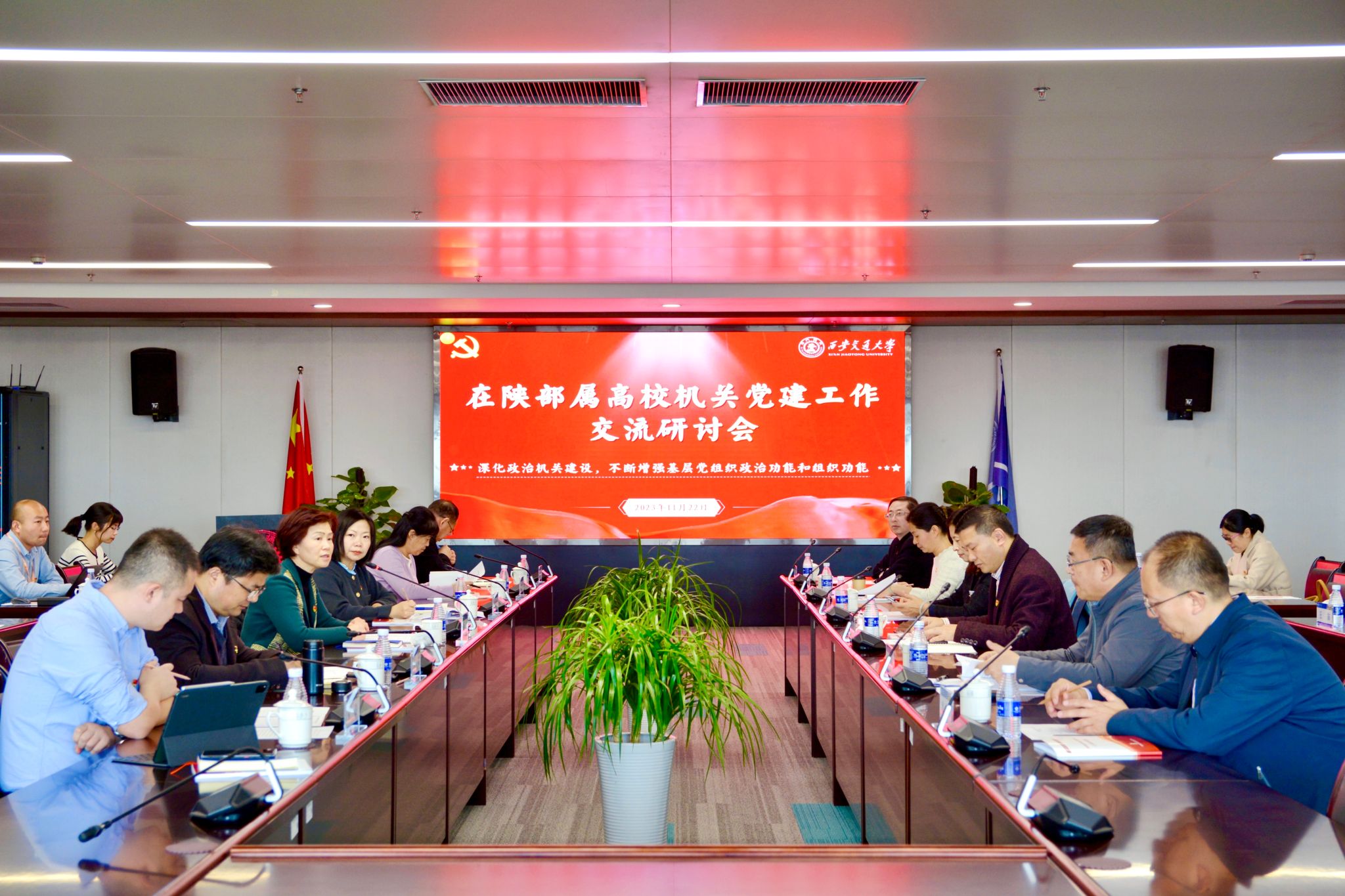 为深入学习贯彻习近平新时代中国特色社会主义思想和党的二十大精神,贯彻落实习近平总书记关于党的建设的重要思想,11月22日下午,环球ug登录网站机关党委全体人员赴西安交通大学创新港参加在陕部属高校机关党建工作交流研讨会,与西安交通大学、西北工业大学、西北农林科技大学、陕西师范大学、西安电子科技大学等六所高校机关党委的同行们交流研讨。