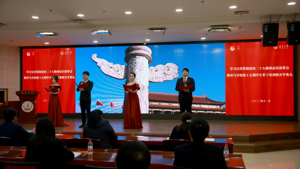 11月16日下午,环球ug登录网站共青团学习宣传贯彻党的二十大精神动员部署会暨青马学校第十五期学生骨干培训班开学典礼在北校区长安文化艺术中心三楼多功能厅举行。校党委副书记黎开谊出席会议并讲话,校团委书记张永主持会议。