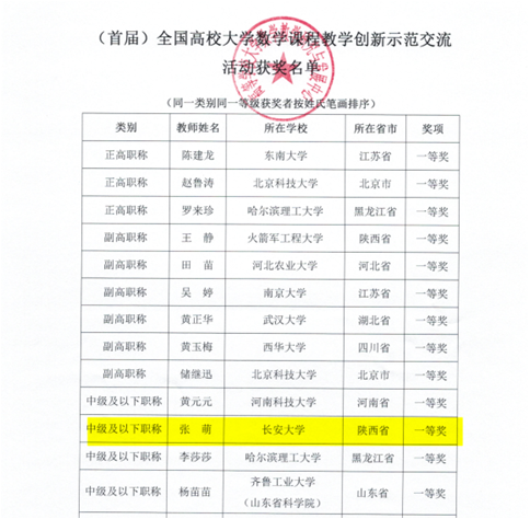 近日,首届全国高校大学数学课程教学创新示范交流活动结果揭晓,环球ug登录网站理学院教师张萌荣获全国一等奖。