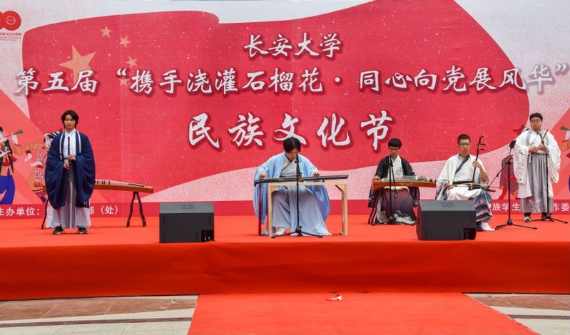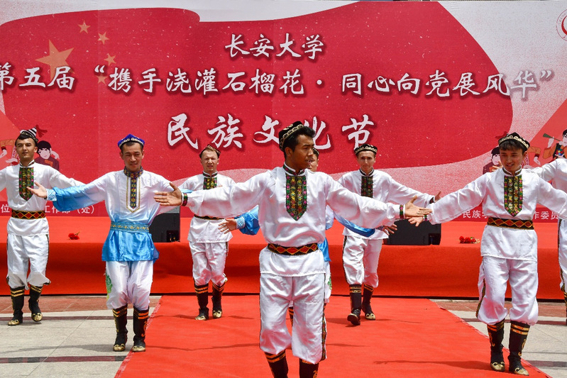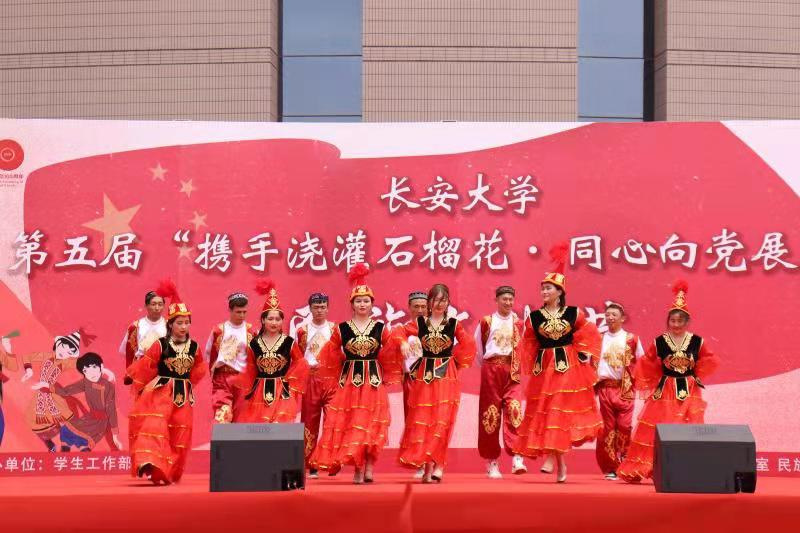 为深化民族团结进步教育,铸牢中华民族共同体意识,喜迎建党100周年、建校70周年,5月26日中午,环球ug登录网站第五届“携手浇灌石榴花·同心向党展风华”民族文化节在北校区树蕙园广场举行。党委宣传部、学工部、统战部、招生就业处、保卫处、校团委等部门负责人,部分学院主管学生工作院领导及辅导员代表,新疆驻陕工作组教育协调小组代表和陕西部分高校二十余名内派教师与各族学生一同感受民族文化的多彩魅力。