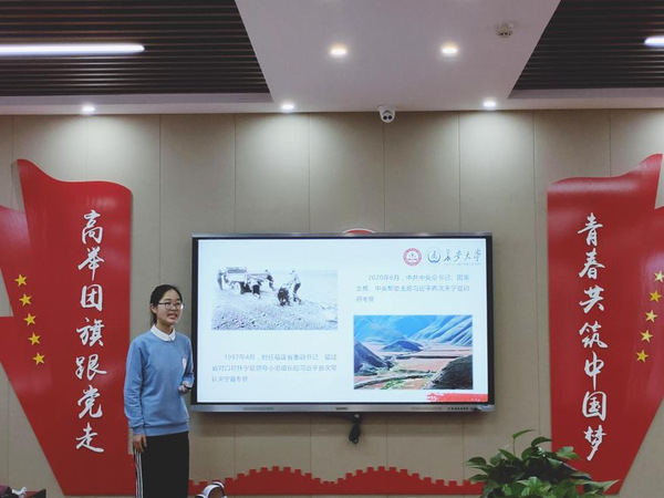 比赛中,黄艺南通过聚焦中国第一个农村党支部诞生地的百年沧桑巨变和其创建者弓仲韬的人生经历,解读百年答卷中的红色基因,感受百年征程里的初心使命。胡冰冰由青海西海固的发展变化引入主旨,通过脱贫攻坚精神深刻展示中国共产党为什么能的时代命题。