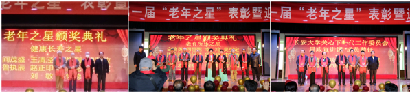 活动对第一届“健康长寿之星”、“老有所学之星”、“老有所为之星”、“乐于助人之星”和“老有所乐之星进行了表彰。活动还为校关工委“思政宣讲团”的8位老师颁发聘书。