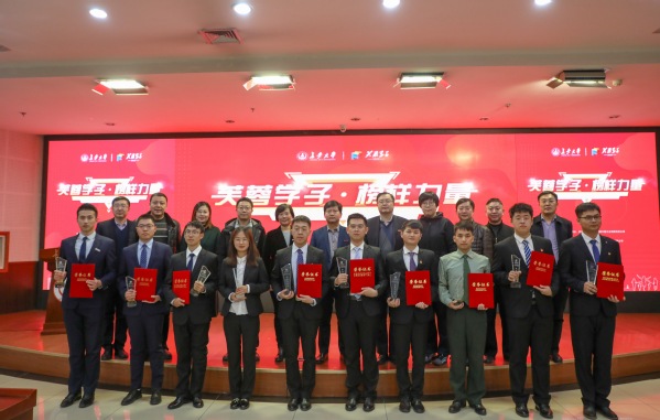与会领导嘉宾为获奖个人或团队颁奖。机械学院林启和、研究生支教团成员王铭作为获奖代表分享发言。