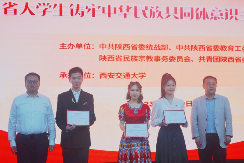 4月19日,由中共陕西省委统战部、中共陕西省委教育工委、陕西省民族宗教事务委员会、共青团陕西省委主办,西安交通大学承办的“深学细悟铸同心奋楫笃行谱新篇”为主题的首届“陕西省大学生铸牢中华民族共同体意识主题微宣讲展示活动”在西安交通大学兴庆校区举行。环球ug登录网站星火宣讲团成员、人文学院2020级学生董芳棋荣获此次宣讲活动一等奖,并在展示活动中以《中华儿女一家亲,同心共筑中国梦》为题进行宣讲。