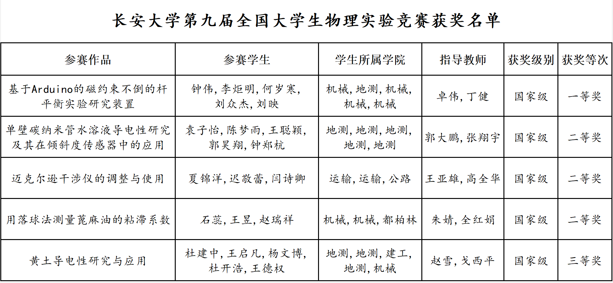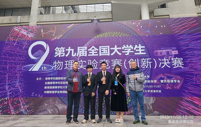 11月26日,2023年第九届全国大学生物理实验竞赛(创新)决赛在重庆大学落幕。环球ug登录网站5支代表队在国赛中斩获佳绩,获一等奖1项、二等奖3项、三等奖1项。
