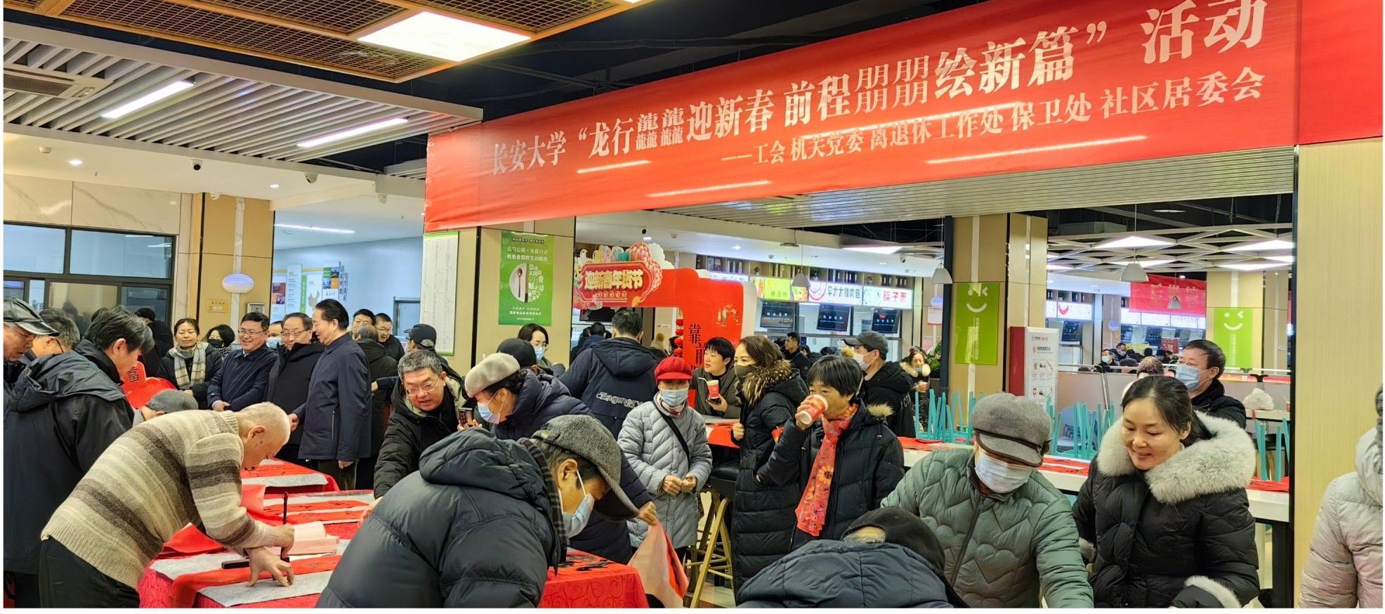 为深入学习贯彻党的二十大精神,弘扬中华优秀传统文化,丰富校园文化生活,营造欢乐祥和平安的节日氛围,2月2日上午,工会、机关党委、离退休工作处、保卫处、社区居委会联合组织开展“龙行龘龘迎新春 前程朤朤绘新篇”活动,校党委副书记徐引正、副校长朱杰君莅临活动现场。