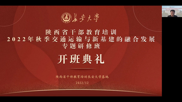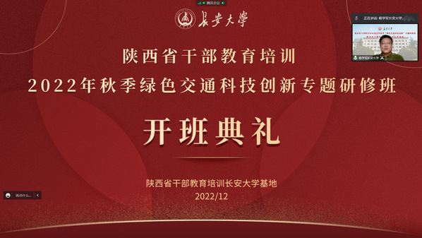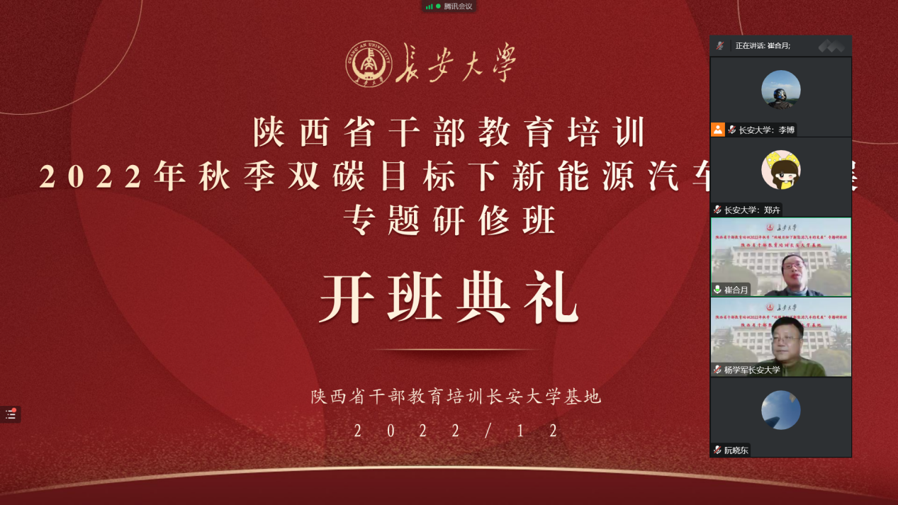 12月19日至21日,由陕西省委组织部主办、陕西省干部教育培训环球ug登录网站基地承办的2022年秋季交通运输与新基建的融合发展专题研修班、绿色交通科技创新专题研修班、双碳目标下新能源汽车的发展专题研修班,分别举行线上开班仪式。我院党委常委、组织部部长李文雄,继续教育学院副院长杨学军分别出席了开班仪式,省市区(县)有关部门、企业的领导干部共110余人参加了培训。