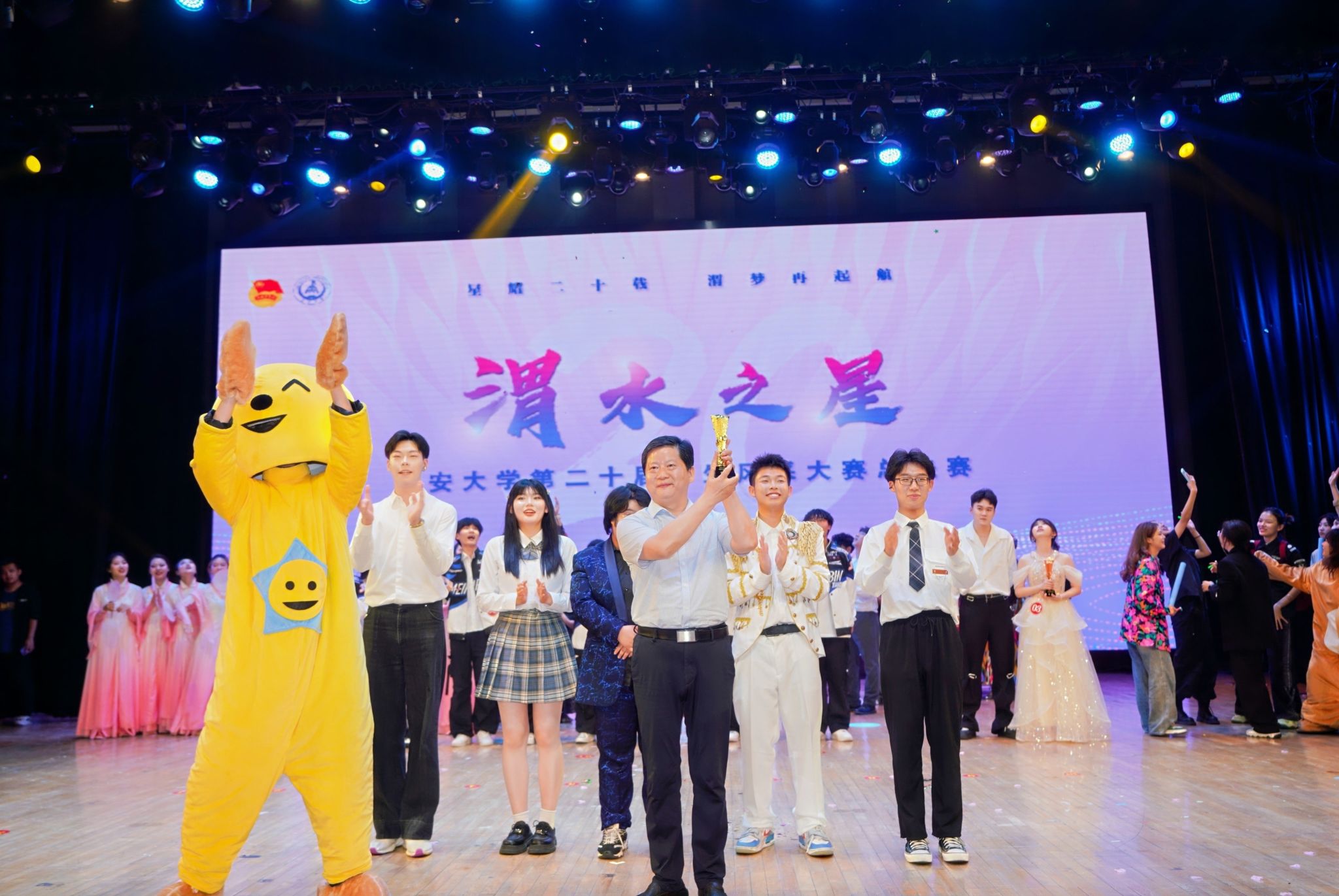 5月29日,第二十届“渭水之星”风采大赛总决赛在长安文化艺术中心大礼堂举办,校党委副书记黎开谊出席晚会并颁奖。