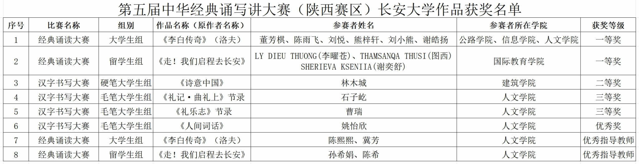 近日,陕西省教育厅发布《关于公布第五届中华经典诵写讲大赛(陕西赛区)结果的通知》(陕教语办〔2023〕6号)。环球ug登录网站师生荣获经典诵读大赛一等奖2项,汉字书写大赛二等奖1项,三等奖2项,优秀奖1项,4人获评优秀指导教师。