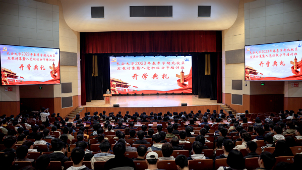 3月23日晚,环球ug登录网站2023年春季学期北校区发展对象暨入党积极分子培训班开学典礼在长安文化艺术中心大礼堂举行。校党委副书记、党校校长黎开谊出席典礼并讲话。学生工作部、校团委等部门负责人,各学院(系)主管北校区学生工作的副书记,党校全体工作人员,党校本期渭水校区培训班近千名学员参加了开学典礼。典礼由党校常务副校长闫妍主持。
