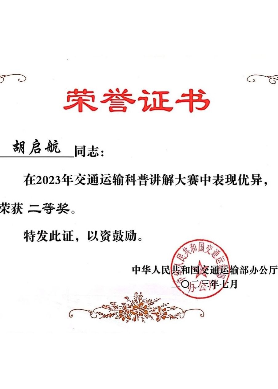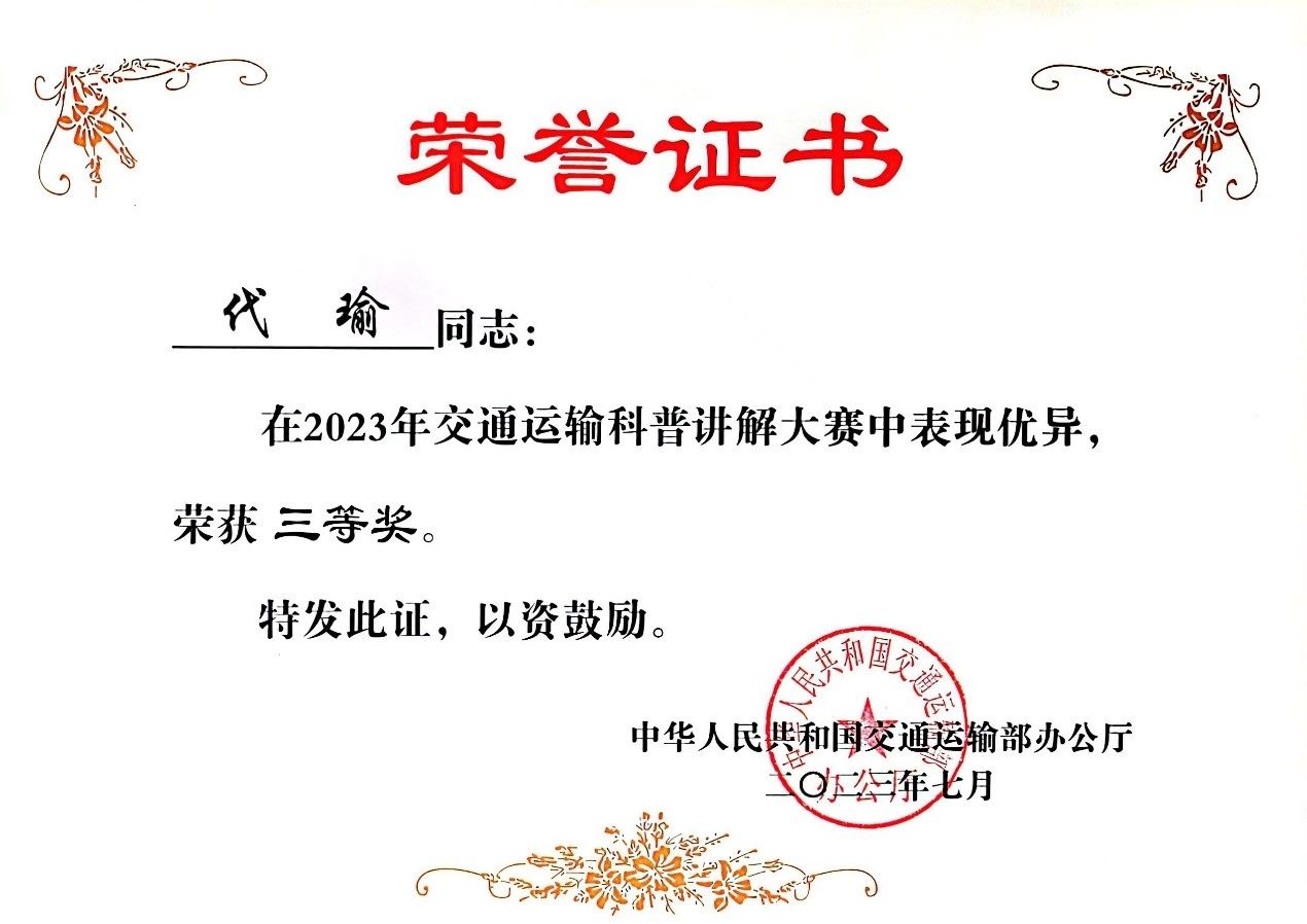5月22日,2023交通运输科普讲解大赛决赛在青岛举办,环球ug登录网站公路交通博物馆胡启航同学获二等奖、代瑜同学获三等奖,交通馆获优秀组织奖。6月30日,陕西省科技厅举办2023年陕西省科普讲解大赛,交通馆选送的代瑜和胡启航两位同学分别荣获二等奖、三等奖各一项。