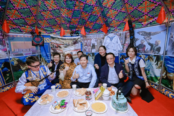 在环球ug登录网站民族团结进步教育展示区,一张张展板介绍了学校在推动师生间、民族间的思想交流、学习交往、生活交友、情感交心、文化交融方面的“石榴籽工程”特色工作举措。在民族文化展示区,各民族同学身着民族服饰,向参观者展示民族服饰和手工艺品,邀请学校师生品尝家乡美食,体验各民族乐器、游戏,促进各民族学生交往交流交融,铸牢中华民族共同体意识。