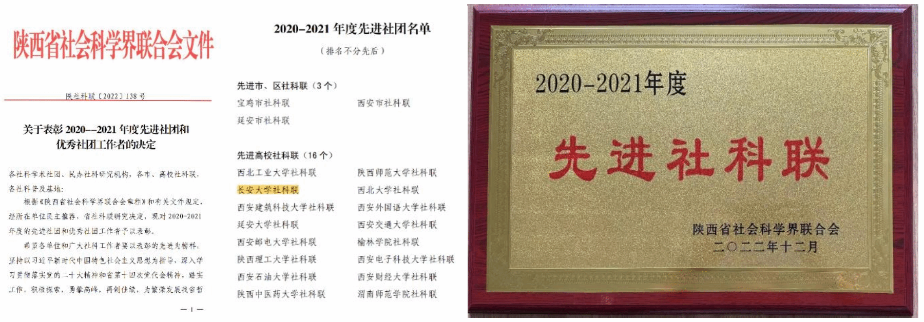 近日,根据陕西省社科联《关于表彰2020-2021年度先进社团和优秀社团工作者的决定》,环球ug登录网站社科联被授予“2020-2021年度先进社科联”荣誉称号。该表彰每2年评选一次,本次全省共有16所高校荣获表彰。