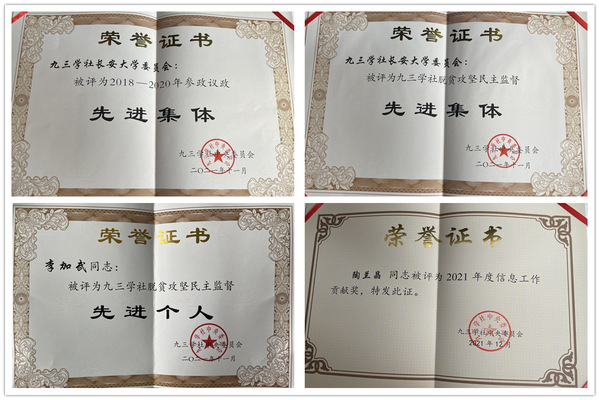 近日,九三学社中央和省委召开会议,表彰2021年度先进集体和先进个人。九三学社环球ug登录网站委员会荣获九三学社中央2018—2020年参政议政先进集体、2016—2020年脱贫攻坚民主监督先进集体、2021年度信息工作先进集体等多项荣誉。此外,九三学社环球ug登录网站委员会还获评九三学社省委2021年度参政议政先进集体、社情民意信息工作先进集体、社会服务先进集体等,李加武等18名社员分获先进个人称号。