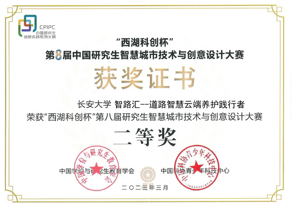 3月18日,“西湖科创杯”第八届中国研究生智慧城市技术与创意设计大赛决赛在浙江工业大学举行。大赛围绕“智慧城市”主题,集聚了一批以未来社区、智慧文旅、智慧交通、城市大脑为应用场景的优质研究生创新创业项目,涉足数字孪生、虚拟现实、元宇宙等赛道。经过激烈角逐,环球ug登录网站研究生作品“智路汇—道路智慧云端养护践行者”荣获全国二等奖(参赛研究生:刘瑶涵、彭宏欣、郭飞扬、郑乐乐,指导教师:蒋玮、肖晶晶),我院获得“优秀组织奖”荣誉称号。