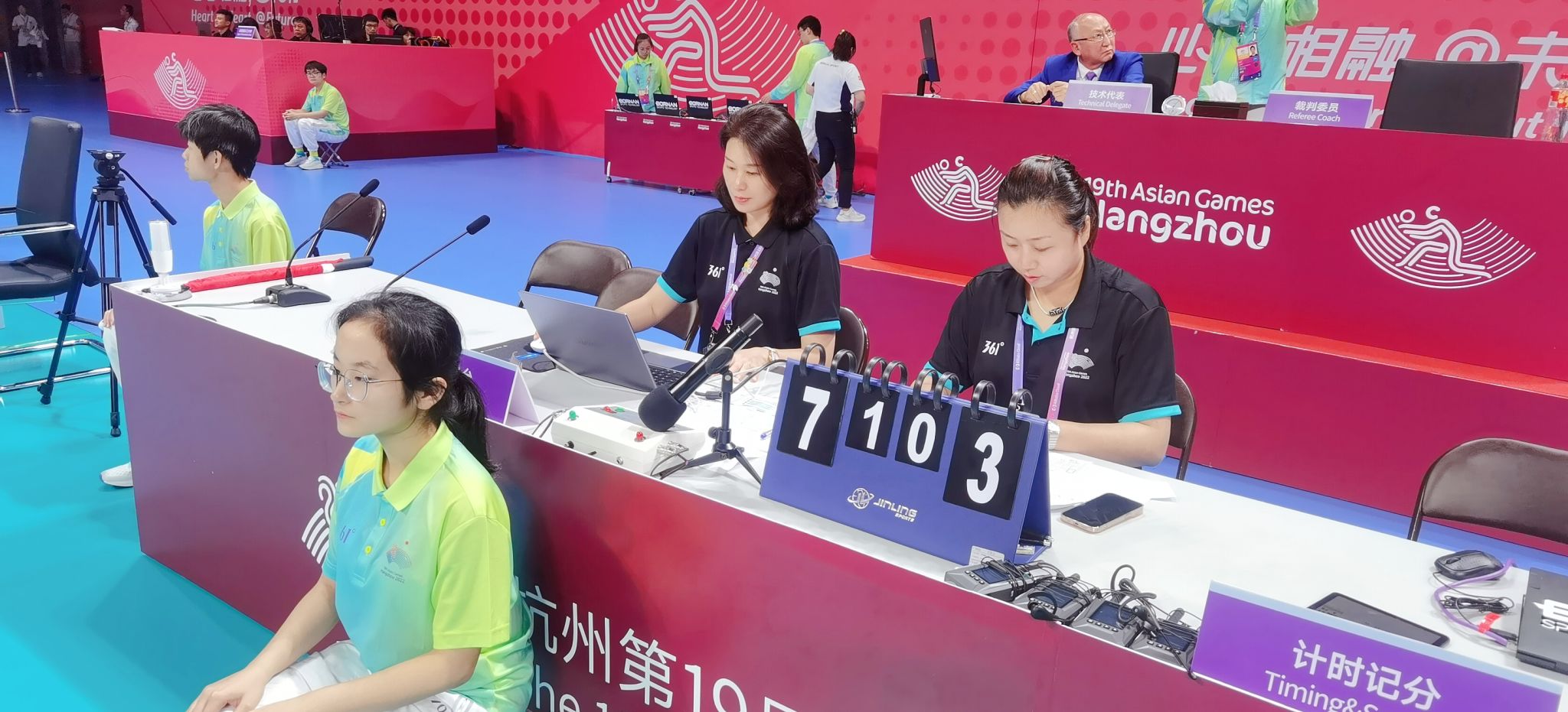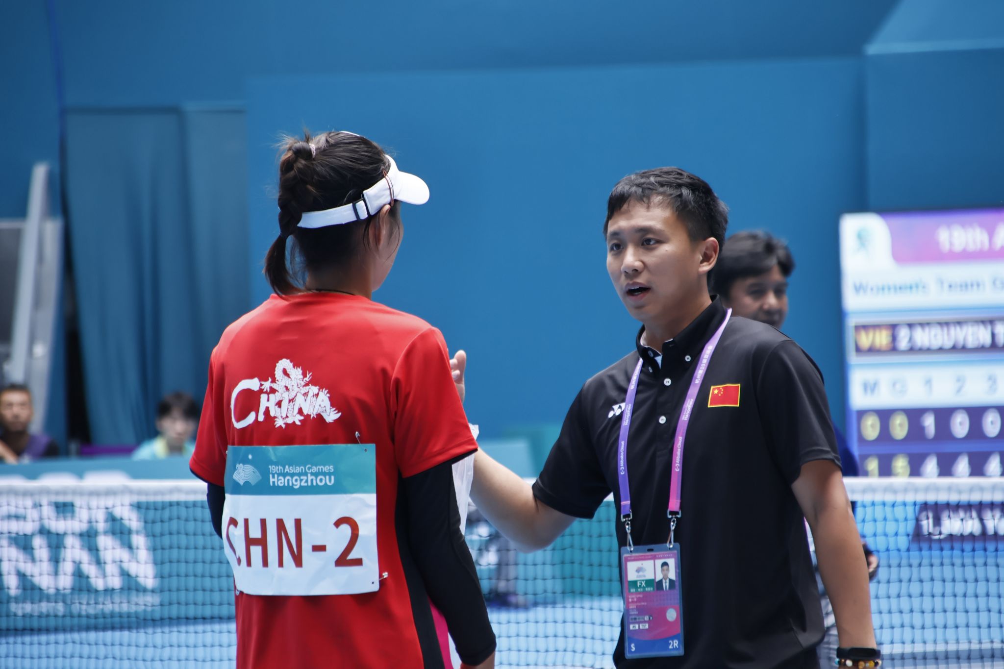 10月8日,杭州第十九届亚运会完美收官。环球ug登录网站体育部(系)教师黄一平、蒋誉分别担任中国软式网球代表队主教练、排球竞赛项目技术官员。