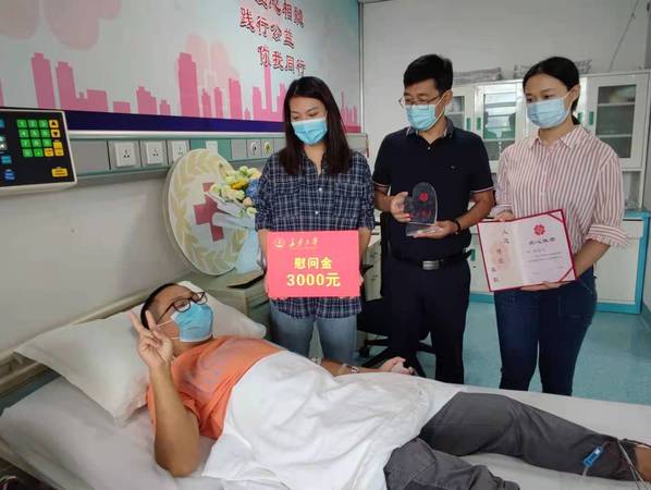 当天上午,校团委、建工学院负责人等前往医院看望慰问了钟磬凌同学,对他乐于助人、无私奉献的高尚品质和爱心善举给予高度赞扬和充分肯定,并代表学校、学院送上慰问金。陕西省红十字协会工作人员为钟磬凌同学颁发了“中国造血干细胞资料库陕西分库爱心使者”和“捐献造血干细胞”荣誉证书。
