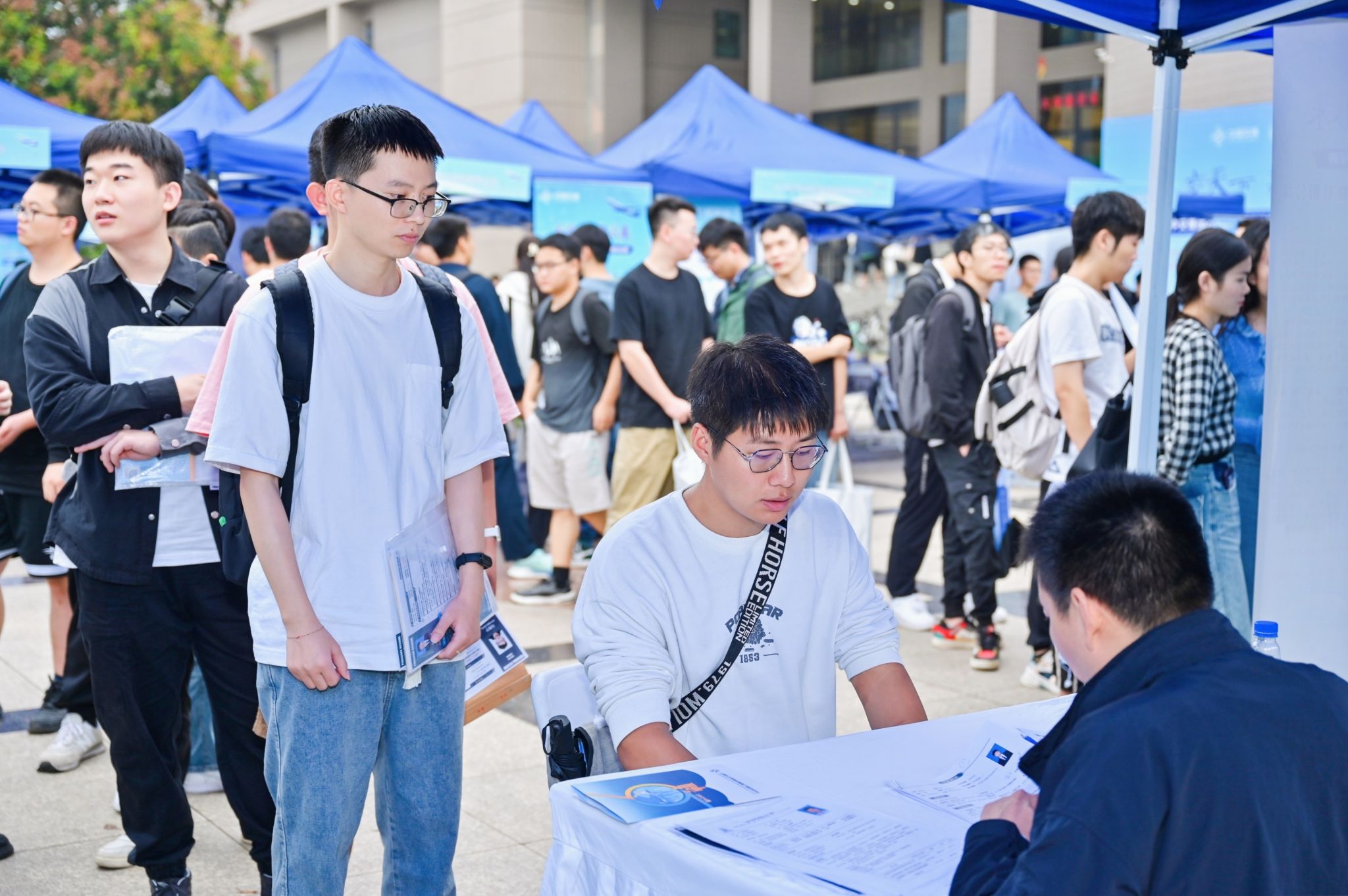 中交集团2024届毕业生环球ug登录网站专场招聘活动在北校区树蕙园广场开展,共有中交集团下属80家二、三级单位参加,招聘专业涵盖交通土建类、经管类、机械类、水利环境类、材料类、文法类等相关专业。会场人头攒动,毕业生求职热情高涨,各用人单位对应聘毕业生开展了面试、签约。