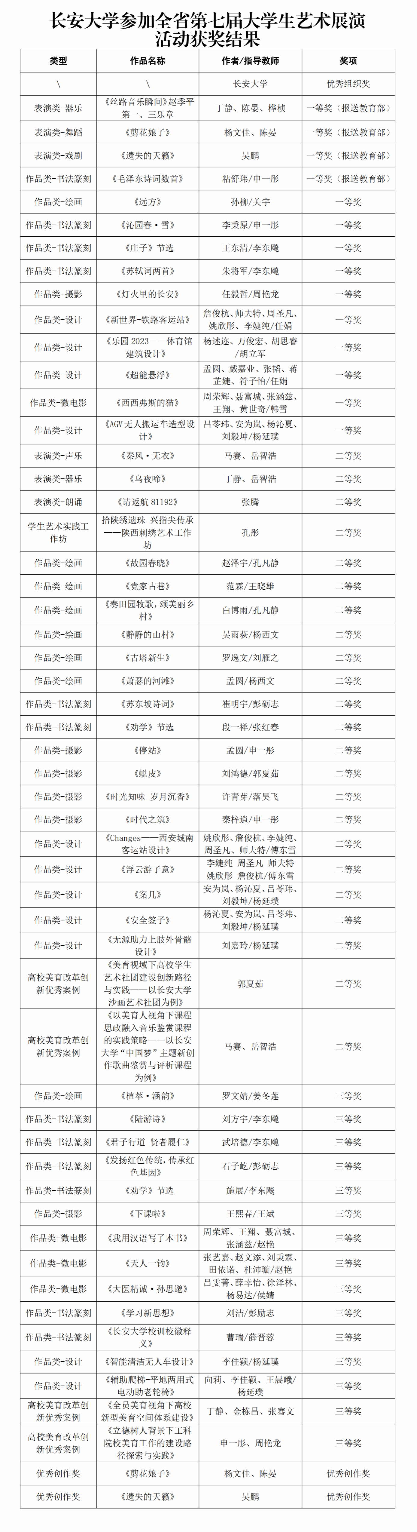 近日,由陕西省教育厅主办的第七届大学生艺术展演活动结束。此次艺术展演中,环球ug登录网站报送的55件作品获奖,其中包括一等奖14项、二等奖23项、三等奖15项,优秀创作奖2项,学校荣获优秀组织奖。其中4项作品推荐报送教育部,代表陕西省参加全国大学生艺术展演。我院获奖数量创历史新高,获奖总数和一等奖数量均位于全省前列。
