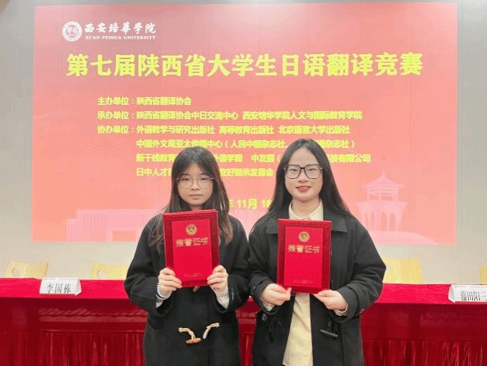 11月16日,第七届陕西省大学生日语翻译竞赛在西安培华学院举行,来自省内13所院校的25名同学进行了激烈的现场比拼。环球ug登录网站外国语学院日语专业2022级栾奕同学、2021级姜维希同学分别斩获比赛一等奖和二等奖。