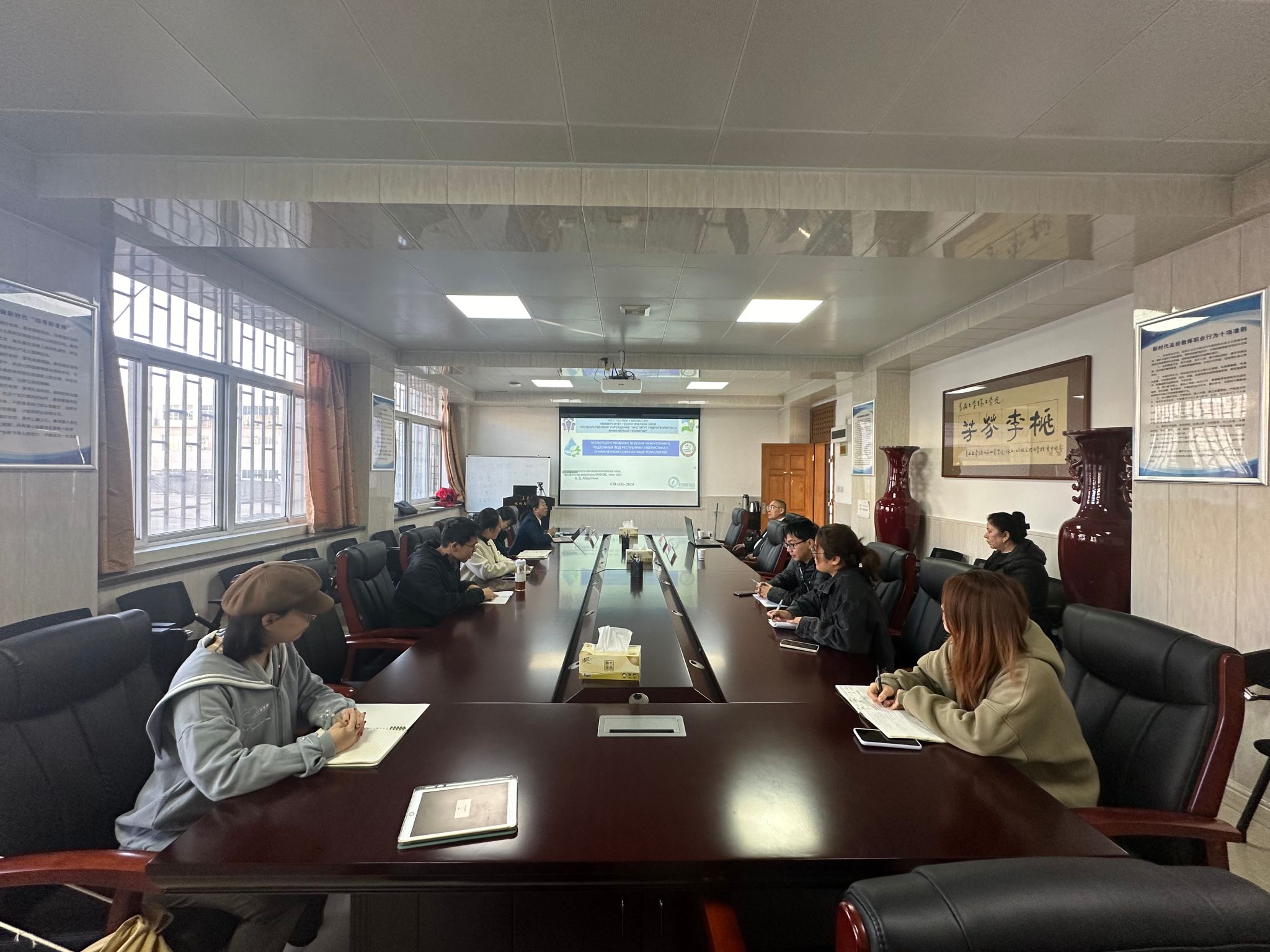 在校访问期间,Abdullaev B.D. 院士分别以“利用现代技术改进乌兹别克斯坦共和国地下水监测工作”“跨界含水层地下水资源管理”“地下水污染问题的解决方法和技术”“气候变化背景下水资源问题”为题为环球ug登录网站师生作了学术报告。Abdullaev B.D. 院士还参观了环球ug登录网站李佩成院士特藏馆。