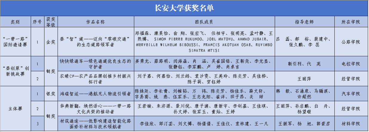 作品《秦“智”道--迈向“零碳交通”的生态道路领军者》荣获“一带一路”国际邀请赛金奖。该作品由环球ug登录网站公路学院郑福森、康昊怡、俞翔、张宏飞及国际教育学院RUVIMBO SINATRA MTISI(钟卉)等同学完成,指导老师为吕磊、郝裕、裴建中、张久鹏、李蕊。项目坚持绿色发展理念,认真落实中国-中亚峰会共识,立足于道路“生产-服役-养护”全生命周期降碳,以替代沥青的“零碳材料”,助力实现废料再生的“零碳建造”以及即铺即通的“零碳养护”。项目以共建“一带一路”倡议提出十周年为契机,紧抓战略机遇,积极与“一带一路”沿线国家对接,推进地区交通基础设施互通互联,为“一带一路”绿色交通发展贡献青春力量。