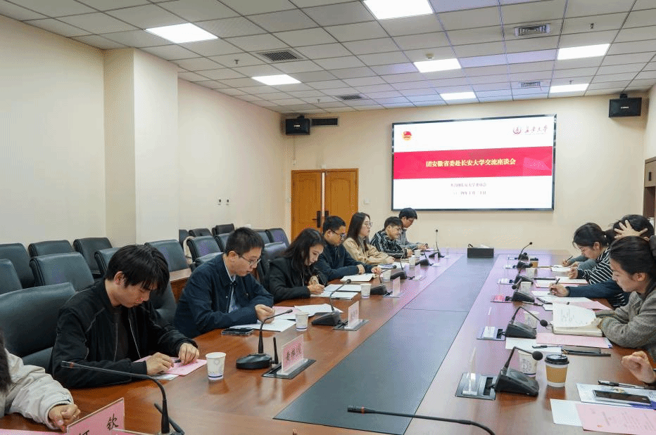 10月30日上午,团安徽省委学校部部长邹永生、副部长汪沫,西安外国语大学团委书记王娜一行来访环球ug登录网站,调研环球ug登录网站迎客松青年驿站建设情况。校党委副书记黎开谊,招就处、校团委相关负责同志参加了会见与座谈。