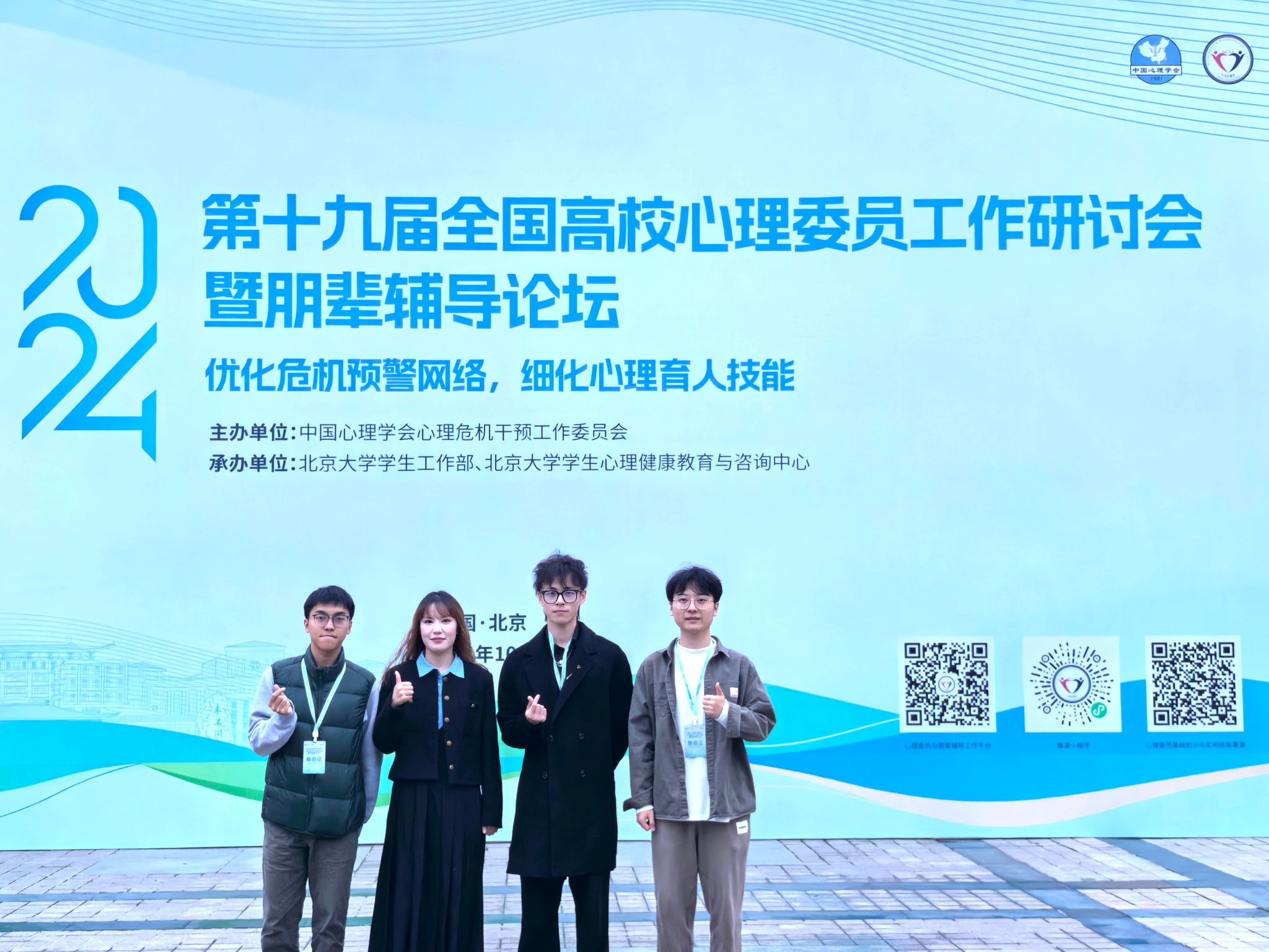 为加强高校心理委员工作队伍建设,促进各高校之间心理健康服务理论与实践工作的交流与合作,近日,中国心理学会心理危机干预工作委员会在北京大学召开第十九届全国高校心理委员工作研讨会暨朋辈辅导论坛。心理健康教育与咨询中心教师程铃琳,优秀心理委员未来交通学院王桂文、材料学院黄建源、建筑学院薛永兴代表环球ug登录网站参加会议,王桂文当选第七届全国心理委员论坛副主席,三名参会学生代表均当选2024年“全国心理委员论坛”成员(原全国百佳心理委员),优秀工作事迹入选《全国百名心理委员风采展》。