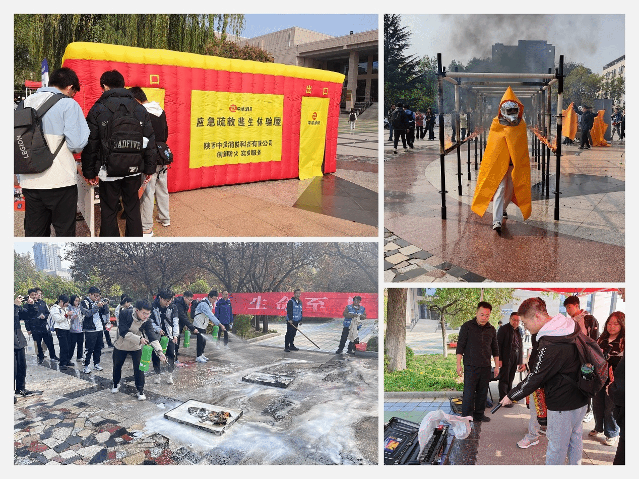 寓教于乐,举办安全实训线下演练。为有效提升广大师生员工的消防安全意识和应急自救能力,于11月8日在北校区举办了“119”消防宣传月安全实训线下演练现场活动,现场设置了海姆立克急救法、安全绳结、烟道逃生气模体验、穿越火线逃生体验、模拟灭火实训、实火演练6项消防安全实训体验活动,还布置了大量消防安全宣传展板,让师生在轻松愉悦的游戏体验中掌握了扑救初起火灾和火场疏散逃生的基本方法,活动现场气氛热烈,师生们积极参与,纷纷表示通过此次活动受益匪浅。