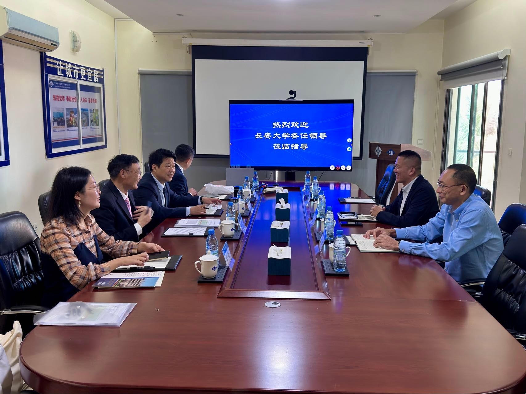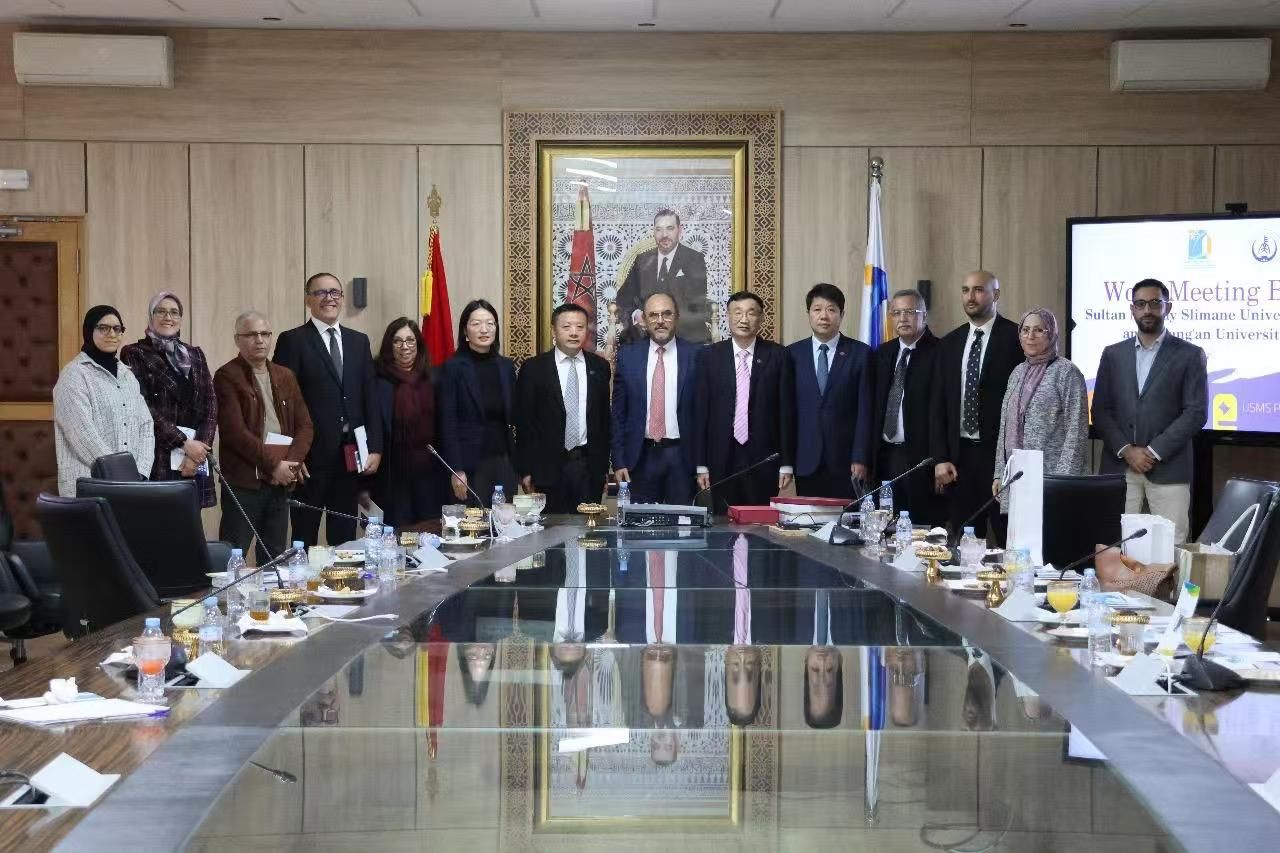 在摩洛哥访问期间,代表团拜会了驻摩洛哥大使李昌林,并先后与摩洛哥苏丹穆雷·斯利曼大学校长Khalid Mehdi及相关学院院长、哈桑二世大学孔子学院中方院长郑琼、摩洛哥FW留学中心首席执行官Abdelhaq BOUKHALF会谈。在与苏丹穆雷·斯利曼大学的座谈中,双方表示希望从促进土木工程、人工智能等领域科技创新与技术转移、加强双方青年学者培训与交流、推动双方硕博士高水平学生交流、促进中摩科技合作国际化发展、建立联合实验室与研发中心等五个方面探索开展合作,并签署了战略合作协议。期间,代表团还与中铁二十局摩洛哥子公司总经理胡广华、中国路桥摩洛哥子公司总经理严斌就校企合作相关领域工作展开讨论。