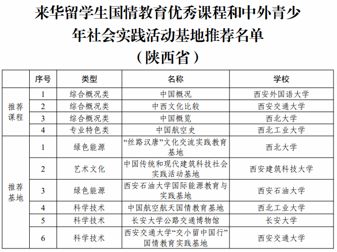 为推进优质资源共建共享,推动来华留学生国情教育高质量发展,中国教育国际交流协会于2024年面向全国开展了首批来华留学生国情教育优秀课程和中外青少年社会实践活动基地征集工作。按照“学校自愿申请、地方统筹推荐”方式,经专家研究和审定,最终共推荐111门课程和115个基地。