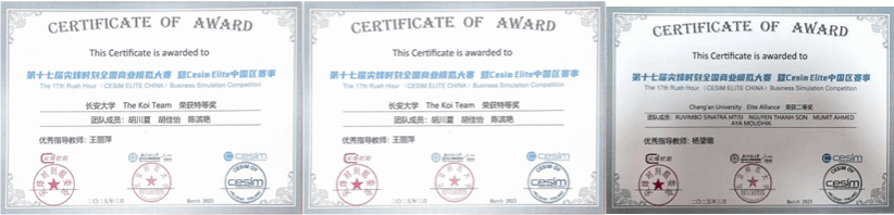 3月28日至30日,第十七届尖烽时刻全国商业模拟大赛总决赛在北京师范大学举行。环球ug登录网站经济与管理学院本科生代表队“The Koi Team”荣获全国唯一特等奖、MBA代表队“常来长安”队荣获全国一等奖,留学生代表队“Chang'an University Elite Alliance”荣获全国二等奖,学院工商管理系教师王丽萍荣获“优秀指导教师奖”。