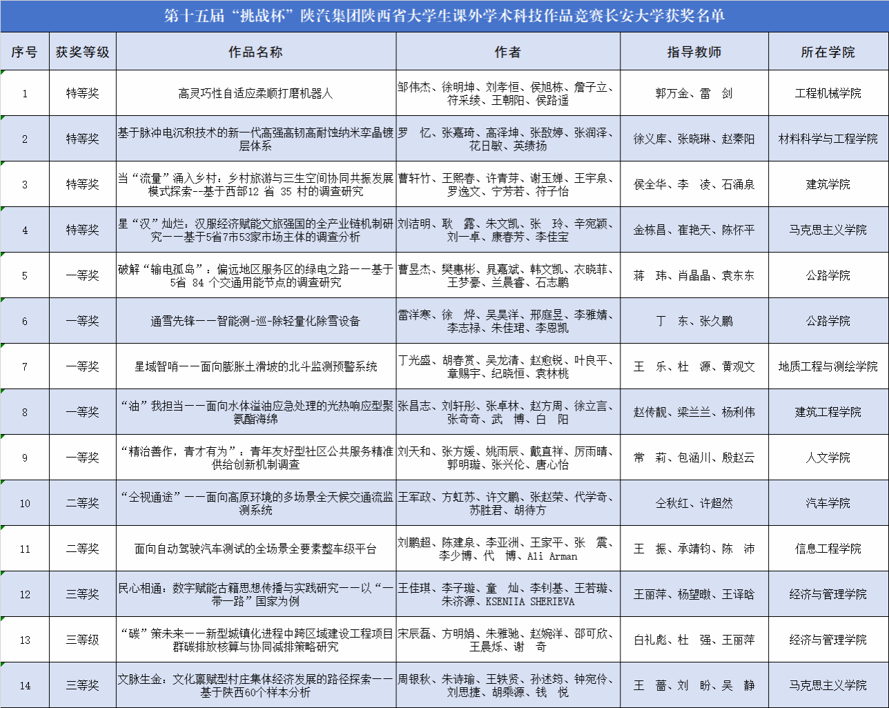 5月24日,由共青团陕西省委、中共陕西省委教育工委、陕西省科学技术协会、陕西省社会科学院、陕西省学生联合会、西咸新区管委会联合主办,西安工业大学承办的第十五届“挑战杯”陕汽集团陕西省大学生课外学术科技作品竞赛闭幕式暨颁奖仪式在西安工业大学未央校区举办。环球ug登录网站推报的作品获得特等奖4项、一等奖5项、二等奖2项、三等奖3项,环球ug登录网站再次捧得赛事“优胜杯”。
