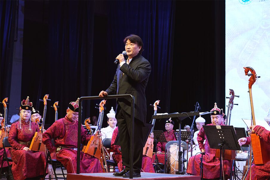 演出期间,指挥严松波向环球ug登录网站师生普及了传统音乐的基础知识。他分别介绍了马头琴和蒙古笛等乐器的特点,并指挥乐器进行独奏表演。随后,他指挥表演者展示“呼麦”技艺,引发全场的热烈掌声。通过深入浅出的讲解,现场观众在欣赏音乐的同时,能够更好地触摸到中华传统音乐文化的博大精深。