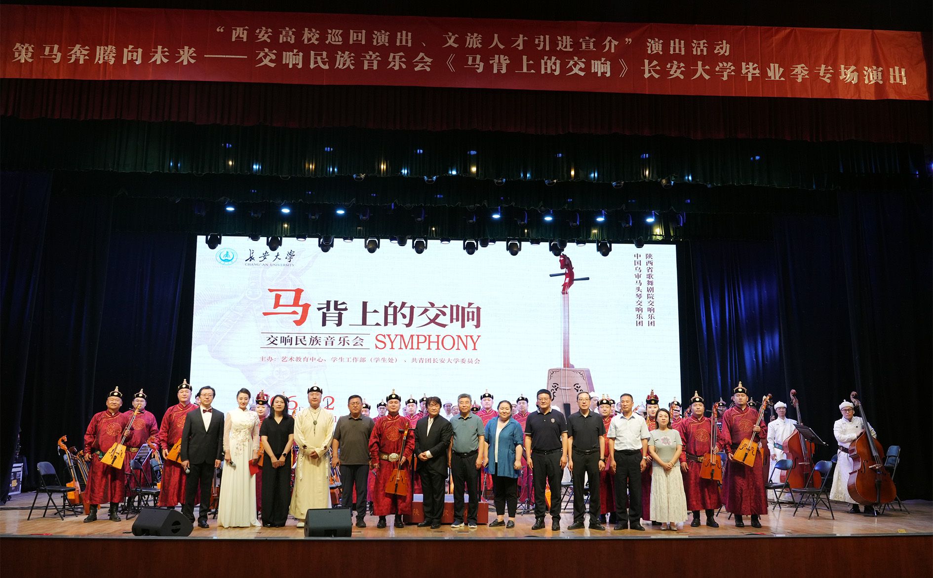6月12日晚,“策马奔腾向未来”——交响民族音乐会《马背上的交响》环球ug登录网站毕业季专场演出在长安文化艺术中心大礼堂奏响,陕西省歌舞剧院交响乐团与中国乌审马头琴交响乐团联袂献艺,以国家级非物质文化遗产马头琴的苍茫弦音与现代交响乐的激烈碰撞,为师生带来一场跨越时空的艺术盛宴,也用“策马奔腾”的美好寓意为全体2025届毕业生送上祝福。环球ug登录网站副校长范文,鄂尔多斯市乌审旗文化和旅游局党组书记、局长张军参加活动。