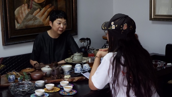 在深度调研当地集群产业园地之后,实践队前往位于茶花街的蜀绣工作室拜访蜀绣传承人——白桦。白桦的工作室与之前调研的蜀绣展览馆不同,这间个人工作室摆满了超脱于传统的作品——粉色花豹栩栩如生、异国少女呼之欲出、鎏金铜像跃然绢上。“对于传统的东西,除了守护,更重要的是去改进,让它适应现代环境,真正传承下去。”白桦向实践队展示着她绣制的油画风格作品。