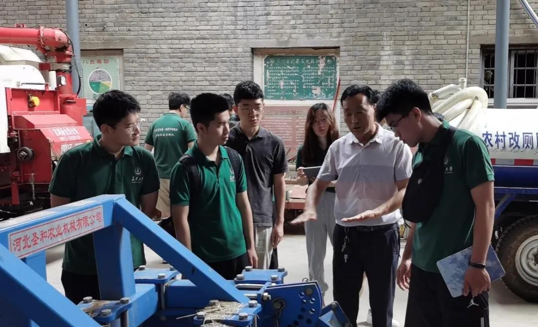 柳家塬村副支书杨忠强为实践队介绍大型农机