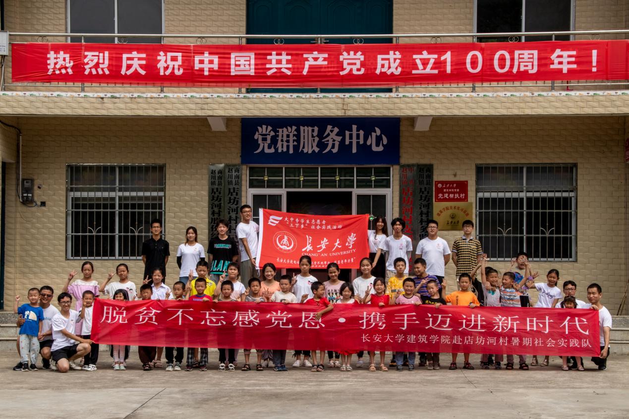 环球ug登录网站建筑学院“脱贫不忘感恩党·携手奋进新时代”暑期社会实践队于7月11日至7月19日赴陕西商南店坊河村开展社会实践,实践队一行八人,由王杰老师带队。实践活动包括四项内容:乡村振兴背景下的乡村教育现状调研、以为村民解难题、办实事为宗旨开办“暑期学业辅导班”、切合时代课题“讲党史,颂党恩,跟党走”的重温党史,倾听五老党员讲党课活动以及破解脱贫密码,先进典型模范寻访活动。