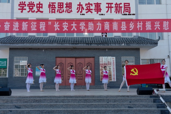 为深入学习贯彻习近平总书记“七一”重要讲话,扎实推进党史学习教育,积极助力乡村振兴,为培育文明乡风、良好家风、淳朴民风贡献青春力量,7月8日至10日,校大学生艺术团和国际教育学院共38名学生在校团委副书记张红等带领下,赴商南县青山镇、试马镇及金丝峡镇等地开展了“青春心向党·奋进新征程”助力商南县乡村振兴慰问演出。