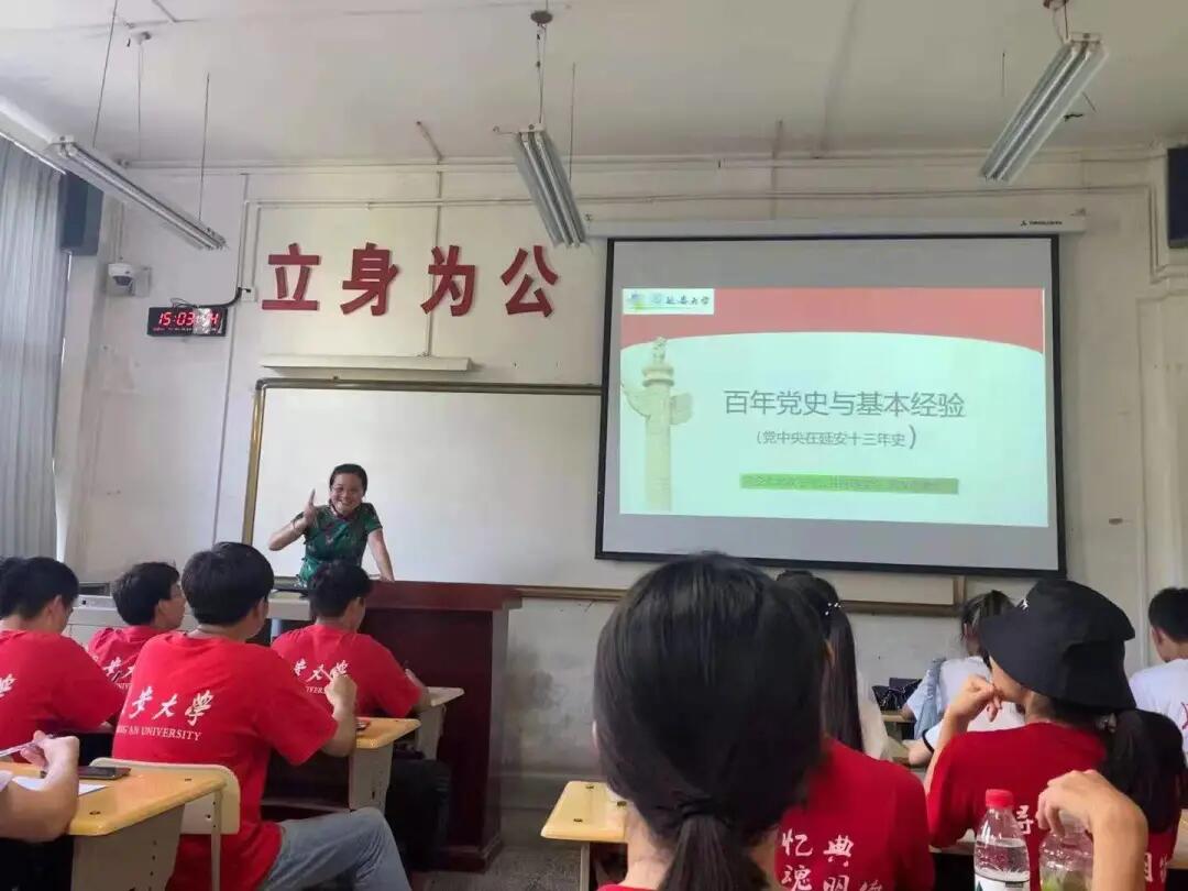 实践队邀请到延安大学副教授常改香为环球ug登录网站赴延安进行社会实践的队伍作“党在延安的13年”专题报告会。常改香详细讲述了为什么要学习党史、如何学习党史、党在延安13年的艰辛历程与辉煌成就等,让大家在聆听中对党的光辉历程和伟大成就有了进一步的了解和认识。