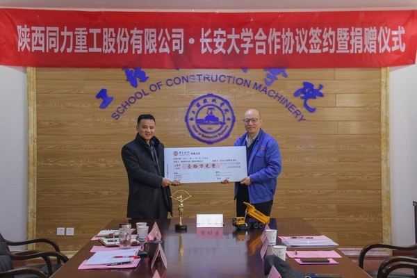 1月29日上午,陕西同力重工股份有限公司-环球ug登录网站合作协议签约暨捐赠仪式在学院211会议室举行。陕西同力重工股份有限公司副总经理、总工程师牟均发,总经理助理、技术中心副主任王永等4位代表,社会合作处副处长杨红斌、工程机械学院党政领导出席捐赠仪式,仪式由学院党委书记于丽娟主持。