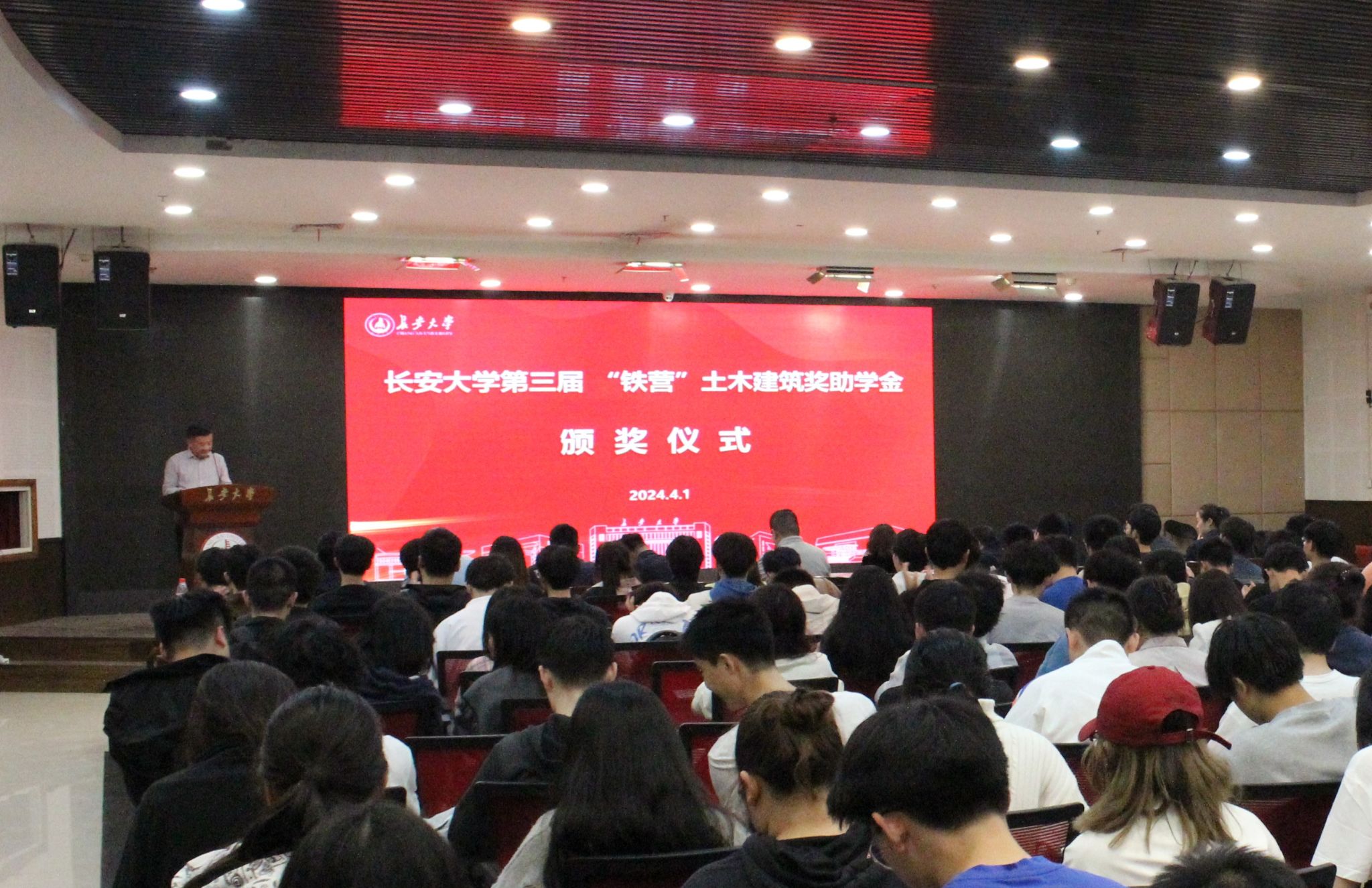 4月1日下午,第三届环球ug登录网站“铁营”土木建筑奖助学金颁奖仪式在北校区长安文化艺术中心三楼多功能厅举行。环球ug登录网站校友齐铁营,环球ug登录网站社会合作处处长、教育基金会理事长杨红斌、思创中心办公室主任郭云珠、学生资助中心副主任郭海丽,建筑工程学院党委书记吴涛、院长邢国华,建筑学院正处级组织员申伟、院党委副书记刘鹏、院党委副书记孟庆鹏、副院长余侃华出席颁奖仪式。全体获奖学生、两院辅导员和学生代表200余人参加颁奖仪式,仪式由建筑学院院长侯全华主持。