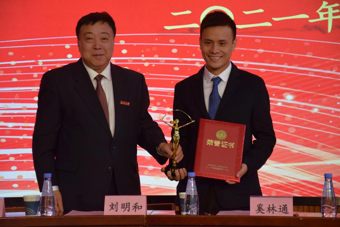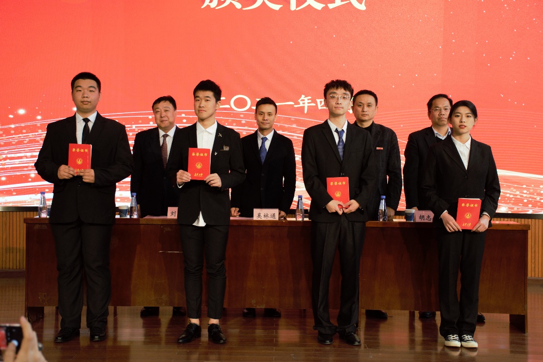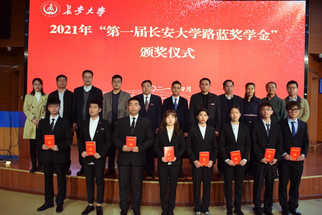 欧阳韬宣读2021年“第一届环球ug登录网站路蓝奖学金”获奖学生名单。与会领导嘉宾为获奖学生颁发荣誉证书。刘明和为奚林通颁发捐赠证书。