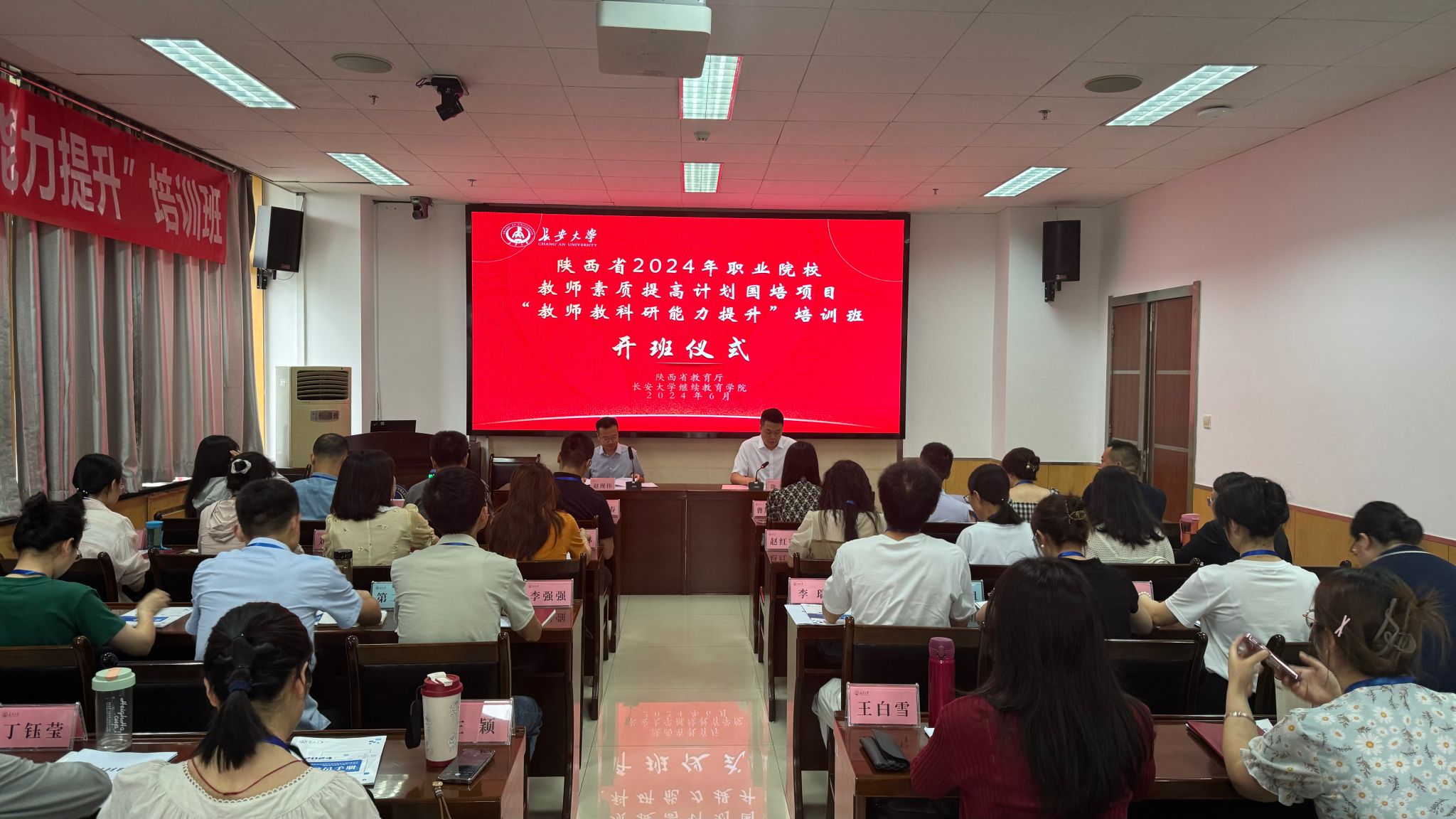 6月17日上午,由陕西省教育厅主办、环球ug登录网站承办的陕西省2024年职业院校教师素质提高计划国培项目——“教师教科研能力提升”培训班在环球ug登录网站开班。教育研究与评估中心(非学历教育管理办公室)主任赵现伟和继续教育学院院长涂帅出席开班仪式,来自省内28个高职院校的59名学员参加仪式。