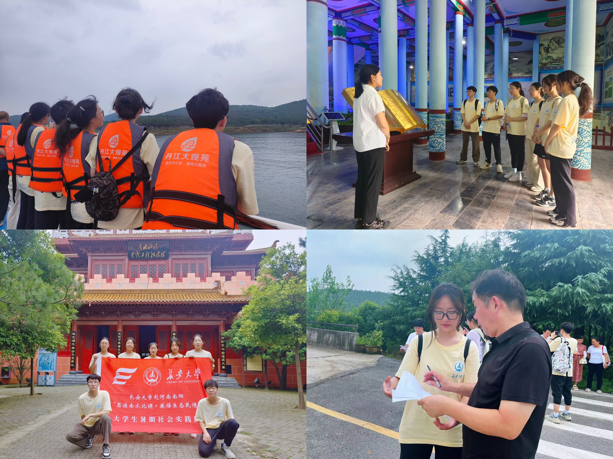 探寻源头,感受南水北调新画卷。实践队先后来到丹江口水库北岸、南水北调中线工程纪念馆参观学习,了解了南水北调中线工程的水源形成、调水过程、环境保护及移民风采等。