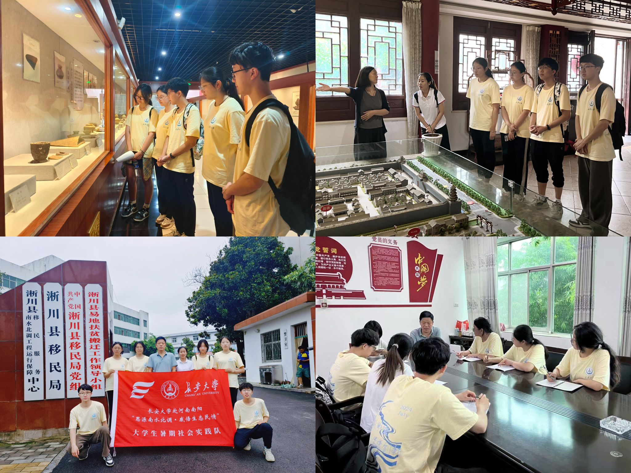 溯源追昔,感悟移民精神新价值。实践队师生参观了淅川县博物馆、南水北调移民生态文化苑,并前往淅川县移民局与移民局办公室主任刘学献开展座谈交流会,听他介绍了南水北调中线工程淅川水段、移民安置等情况,大家深深被淅川人民为了一江清水北流,抛家舍业的奉献精神而感动。