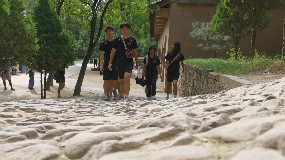 7月27日,实践队来到了中共中央西北局革命纪念馆、宝塔山和枣园旧址参观学习。队员们先后参观了革命纪念馆中的四个展厅,全面了解了中共中央的工作流程和一系列光辉事迹。展厅中的一幅幅照片,一件件旧物,无不蕴含着革命年代深厚的历史积淀,闪耀着延安精神的万丈光芒。随后,实践队员们登临宝塔山,眺望远方,用心感受着延安的古今巨变,以新的视角体会着这座古今交织的城市的魅力与生机。下午,实践队员们来到了枣园旧址,参观了毛泽东等中央领导人的故居和办公地,了解到党的领导者们当年在如此艰辛简陋、危机四伏的条件下领导革命,运筹帷幄,领导着中国走上复兴之路。走出窑洞后,队员们踏上了一条由崎岖不平的石子铺成的上坡路,这是园内唯一的一条保留了原貌的道路。走在这条不一样的路上,队员们不时地注意脚下,但所有人都步伐坚定,希望以此感受真实的枣园。几十年已经过去,我们党已经走过了百年历程,但走得再远,都不能忘记来时的路。