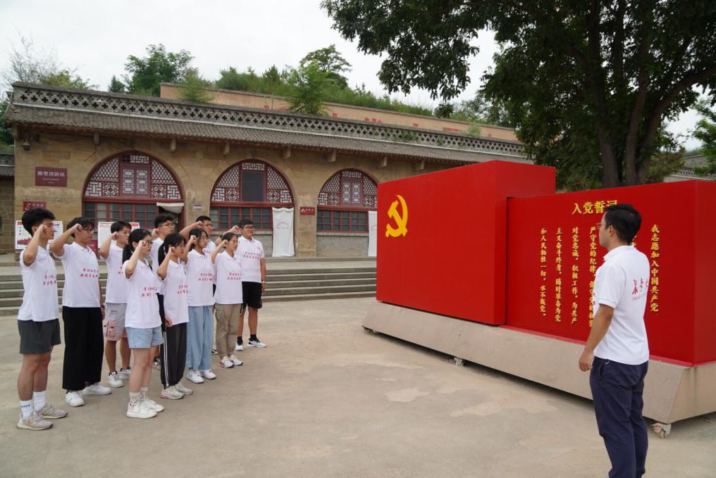 7月25日,实践队来到中共六届六中全会旧址和鲁迅艺术学院旧址,感受战争年代党的重要决策和文明建设方面临危不乱、志存高远的坚毅品质。在学习过程中,实践队遇到了南通洋口建设工程有限公司董事长兼党支部书记翟宝银先生,翟先生亲切地为队员们讲述他与党的故事,并肯定了年轻人在社会主义现代化建设中做出的贡献,提出了希望。队员们在张力雄老师的带领下重温入党誓词,在一词一句中坚定爱党的信念。